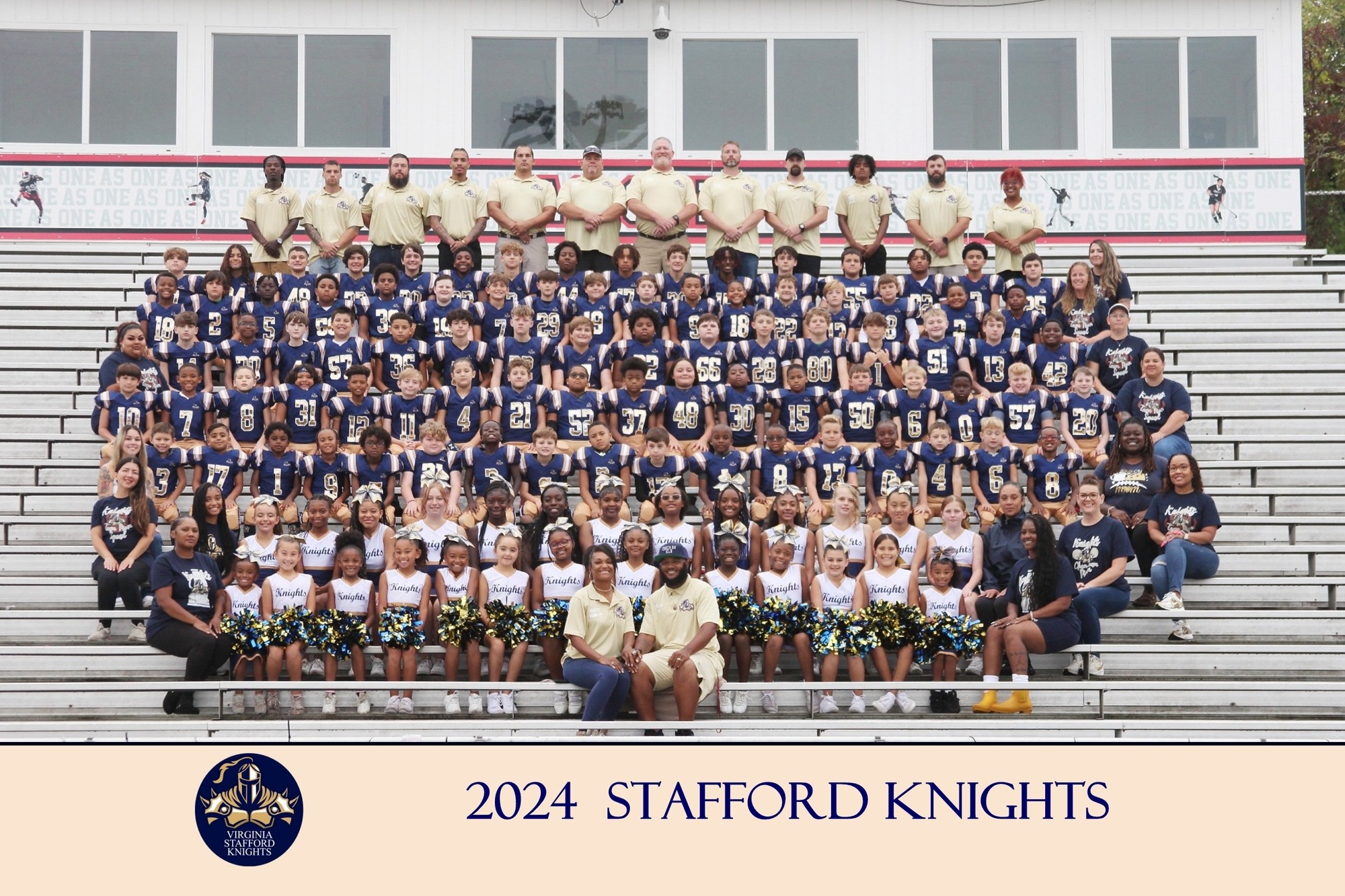 Established in 2017, the Virginia Stafford Knights Youth Football and Cheerleading organization is all about player development on and off the field! We offer the opportunity for all young boys and girls to have the experience of a lifetime, while learning the fundamentals of blocking and tackling, along with the fundamentals of sideline and competitive cheer! We create a family environment in which our athletes can strive, grow and learn while developing friendships and memories that will last forever. Winning is never the priority of our organization, development is, but through hard work, dedication, and consistency we build competitive teams that are battle tested and fundamentally sound. Across Stafford county and the surrounding counties, we have alumni playing on their high school and middle school football teams and cheer leading squads.